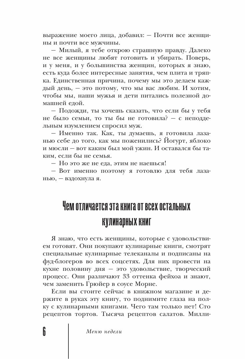 Люблю такие книги - одновременно мотивирующие и информативные. Автора знаю давно - получаю рассылки, слежу за блогом. Познакомилась с ее методикой очень вовремя, когда казалось, что в жизни уже не будет просвета: два ребенка, две работы на удаленке! Заходя на кухню, ненавидела ее всеми фибрами души. Ощущение загнанной лошади, каждый день! Открывала холодильник и понимала, что сил хватит только на самые простые блюда из серии - бросил в кастрюлю и вынул. Да и то... нужно себя заставить.