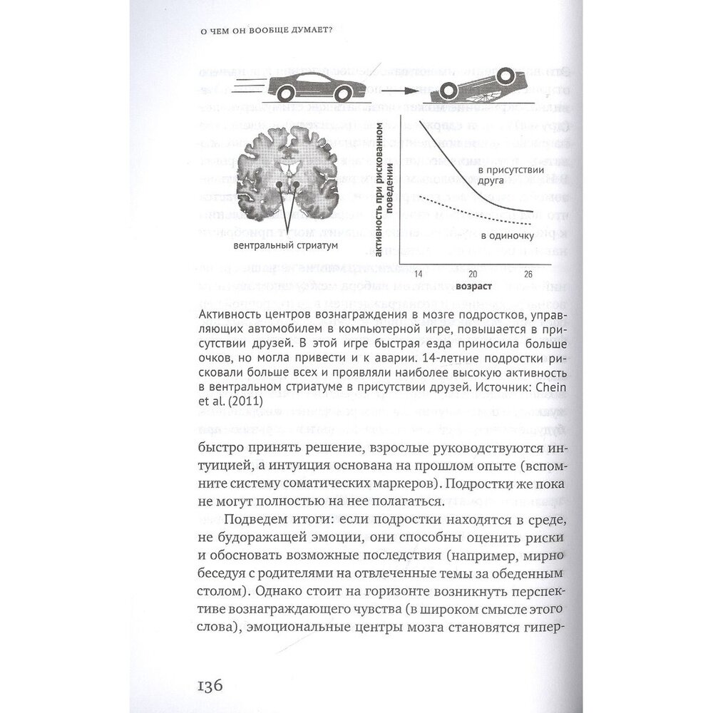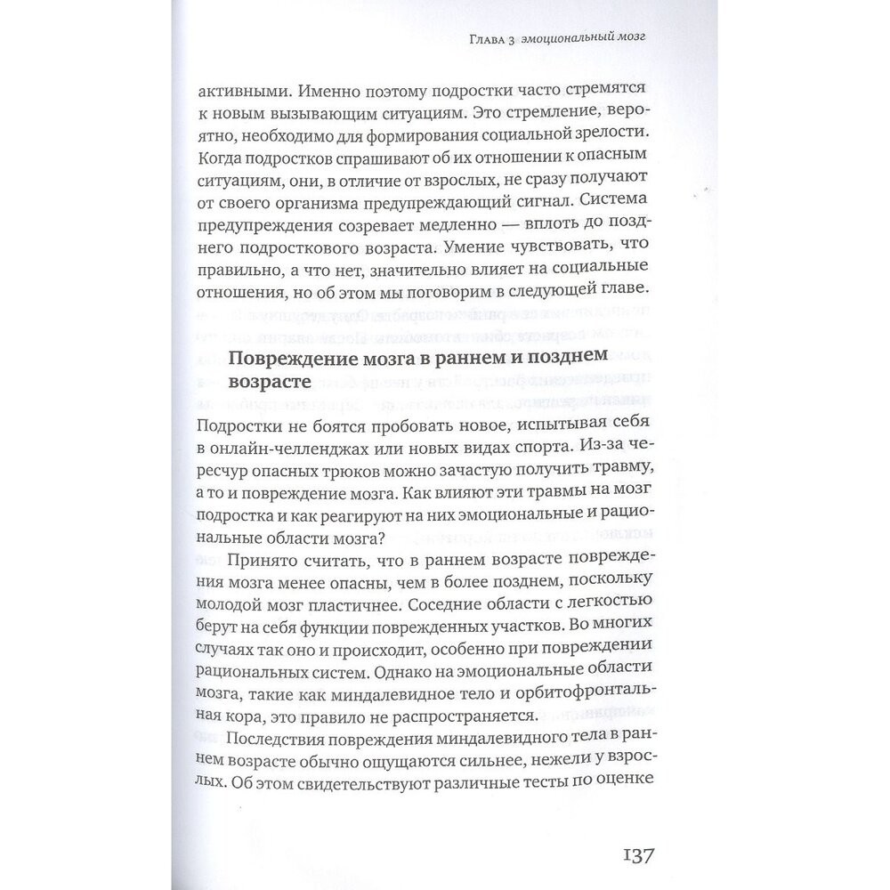 В книге раскрываются основные моменты зрелости головного мозга и о том, как это происходит у подростков. Иной раз недоумеваешь, почему он так себя ведёт. А тут все доступно научно рассказано, что и почему. Почему похвала и акцент на успехах подростка работает лучше, чем вечные причитания и негатив. Почему подростки совершают дерзкие и рискованные поступки, особенно в компании друзей. Почему первая любовь - это в омут с головой. И ещё много почему. Книга помогает понять и принять. Да и в целом довольно интересно и познавательно, тем более книга совсем небольшая. 30 страниц ссылок на источники научн. исследований.