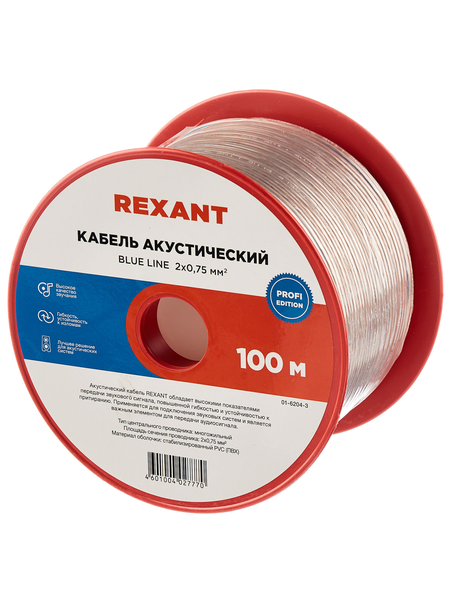 Качественный акустический кабель торговой марки REXANT — залог отличного звука домашней или автомобильной аудиоаппаратуры. Высокое качество изготовления и широкая область применения отличает акустический кабель торговой марки REXANT. Отличное сочетание цены и качества этой продукции порадует любого аудиолюбителя, цель которого — получить чистый звук по выгодной цене.
