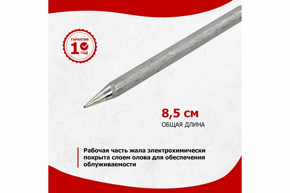 Жало для паяльника 80 Вт (арт. 12-0125) подходит для паяльника с керамическим нагревателем долговечное жало 220 V/80 Вт. Долговечное жало состоит из медного сердечника, который покрыт слоем электролитически осажденного железа. Рабочая часть жала электрохимически покрыта слоем олова (что обеспечивает облуживаемость), а остальная поверхность - хромирована. Предназначено для точной пайки компонентов.Продается по 1 шт.