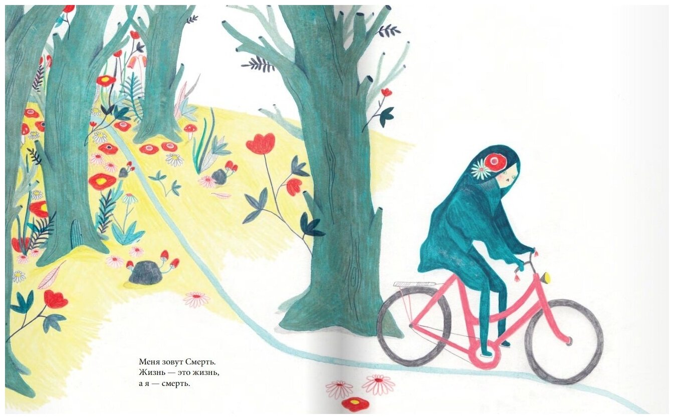 Смерть — это часть жизни, любви и всех нас. В этой книге мы знакомимся со Смертью, принимающей форму доброго и внимательного существа. Её «работа» — собрать всех, кто вот-вот умрёт, — это могут быть насекомые и слоны, дети и старики. Смерть играет незаменимую роль, потому что без неё не будет места для возникновения новой жизни. Смерть выполняет свою задачу как можно более бережно и внимательно.