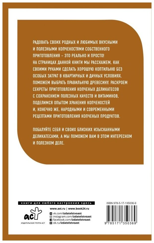 Классная книга. Очень понравилась. Очень подробно и достаточно просто расписано ,как собрать коптильню, будет понятно доже ребёнку. А рецепты очень даже интересны , о многих даже и не слышал. Уже несколько рецептов было нами опробованы . Все понравилось. Книгу рекомендую , хотя бы просто для новых рецептов по копчению. Цена отличная (всего восемьдесят один рубль) , качество нормальное .