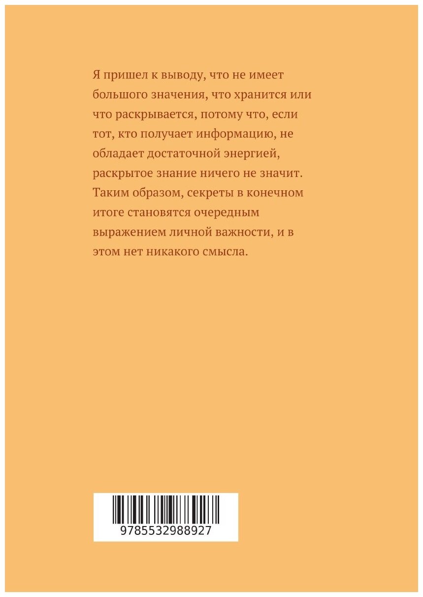 Я пришел к выводу, что не имеет большого значения, что хранится или что раскрывается, потому что, если тот, кто получает информацию, не обладает достаточной энергией, раскрытое знание ничего не значит. Таким образом, секреты в конечном итоге становятся очередным выражением личной важности, и в этом нет никакого смысла.