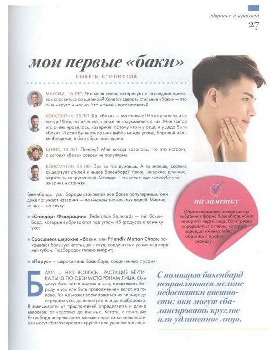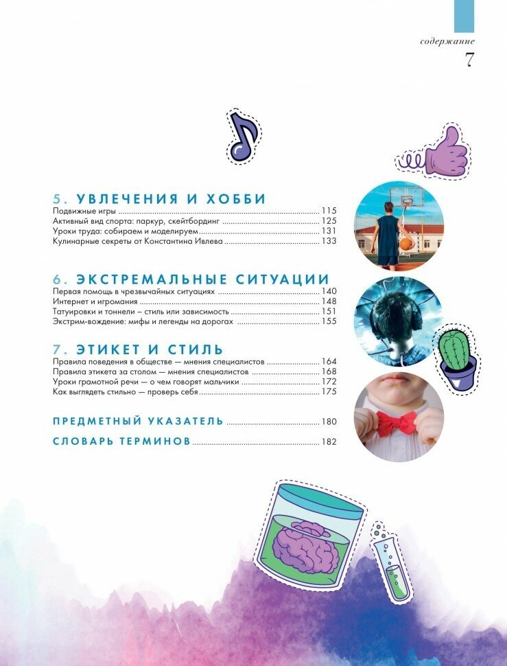 Эта книга даст ответы на самые важные вопросы, которые волнуют мальчиков. Как не стать "ботаном", но иметь хорошую успеваемость и авторитет среди сверстников? Как "вылепить" атлетическую фигуру? Что надеть на первое свидание, а что - на контрольную по математике? Юные бунтари познакомятся с тремя мальчишками, которые без стеснения обсуждают самые разные темы: учебу и увлечения, отношения и чувства, стиль и этикет. Вместе они узнают много нового и полезного, а помогут им в этом эксперты и популярные блогеры: модный стилист и барбер Артур Коханюк @artur_kokhanyuk, мастер барбер-шопа Ника Билиходзе @nick_toporbarber, основатель Школы русского рукопашного боя Михаил Степырев, детский и подростковый психолог Софья Михеева @sofiyadetpsy, дизайнер и бьюти-блогер Сергей Остриков @ostrikovs и другие профессионалы своего дела. Книга великолепно оформлена и наполнена интересными заданиями, анкетами, тестами и местами для записей. Она безусловно станет прекрасным подарком для мальчика-подростка.
