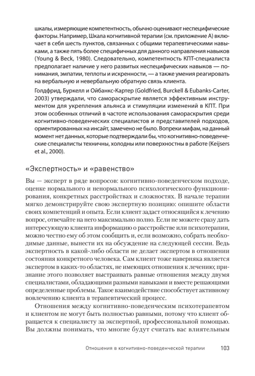 книга подойдёт и для практикующих психологов, так и для новичков. подробно описаны этапы консультирования и терапии, много приведено опровергающих фактов про мифы о кпт, даны памятки и шаблоны для работы. книга не достаточно полно раскрывает работу с конкретными расстройствами, но это не было заявлено в целях. читатель познакомится со всем ,с чем может столкнуться в практике