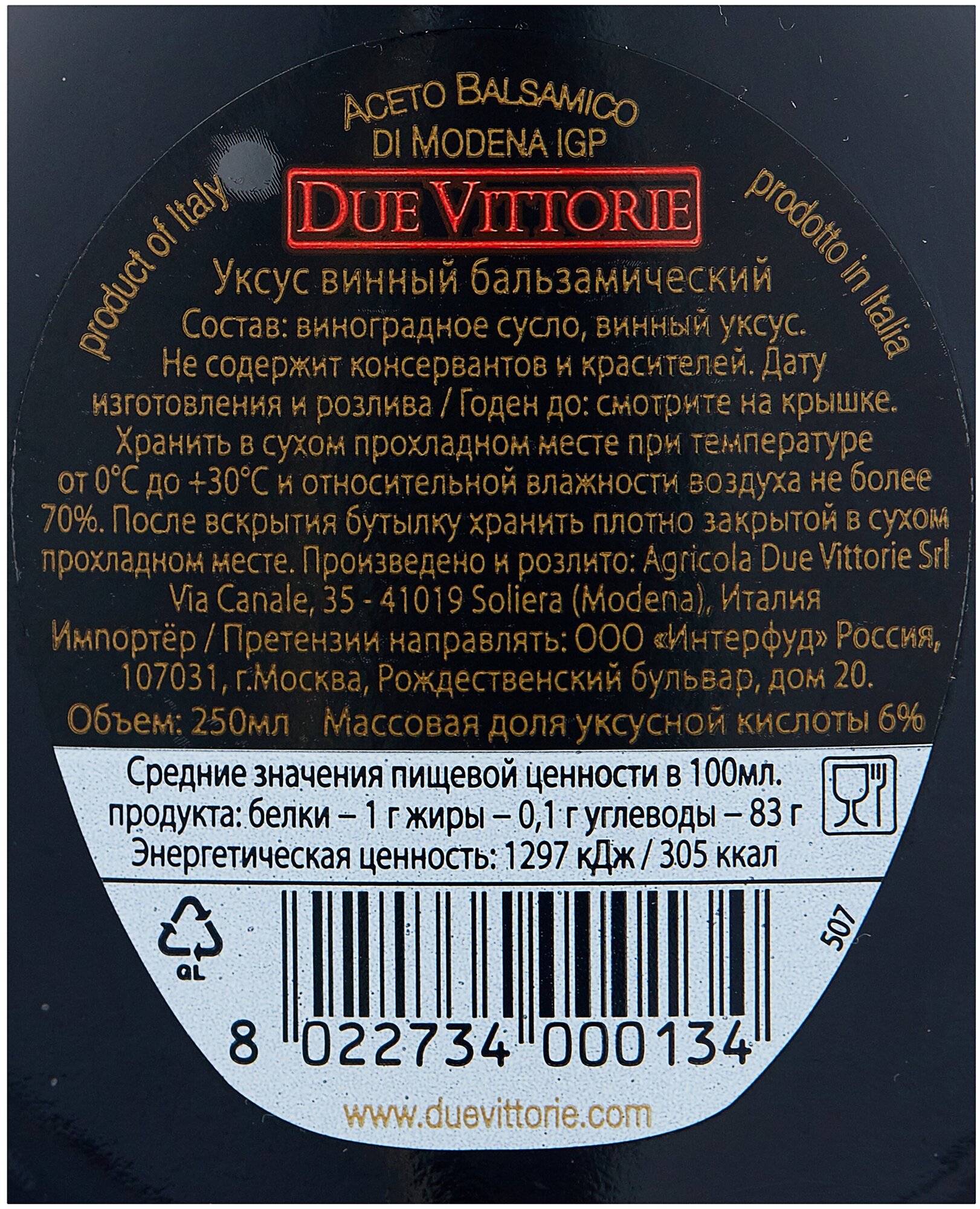 | Состав | виноградное сусло, винный уксус |