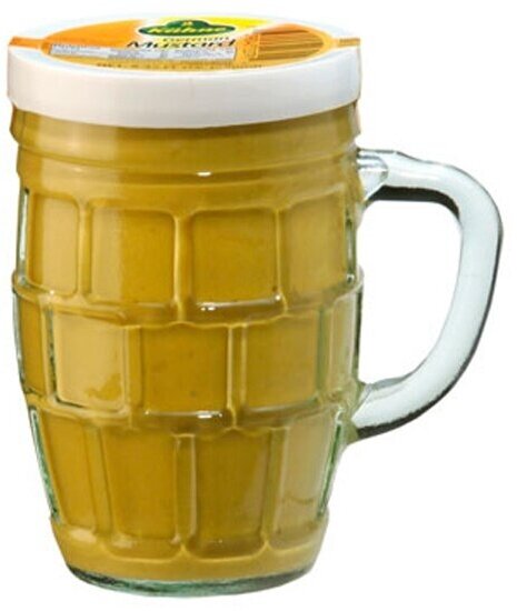 Горчица - одна из самых популярных приправ в немецкой и русской кухни. Традиционно горчица используется как приправа к мясным блюдам и как ингредиент майонеза. Наша столовая горчица в фирменной банке из-под пивных кружек - это классическая горчица средней остроты, которая придаст вашему столу особый вид. Насладившись горчицей, вы можете использовать банку как идеальный стакан для питья. Горчица идеально подходит для заправки и улучшения всех видов блюд. Станет отличным дополнением к закускам, мясу, салатам и сделает ваши блюда более изысканными.Горчичные зерна, из которых делается горчица, содержат белок, жиры, эфирное масло. А также микро и макроэлементы: калий, цинк, магний, железо, кальций, натрий. В состав приправы также входят витамины А, Е, В, D. Главные полезные свойства горчицы - это антимикробное, антигрибковое и противовоспалительное действие.