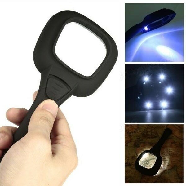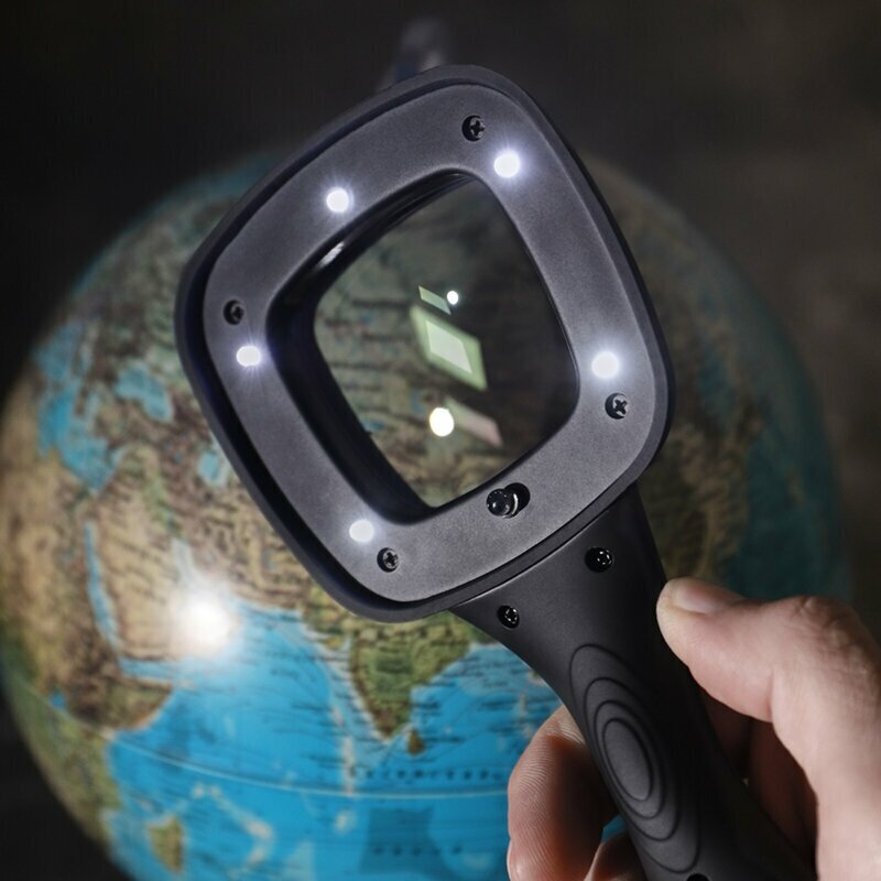 Ручная лупа используется для работ с мелкими деталями, чтения текста/карт, пайки, популярна моделировании. Светодиодная 6LED подсветка позволяет проводить работы при недостаточном внешнем освещении. Увеличение 4x достигается за счет стеклянной линзы. Доступно питание от 2-х батареек типа ААА.