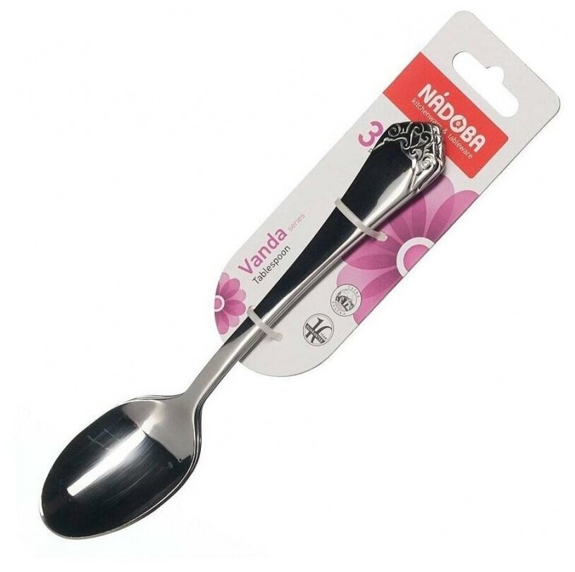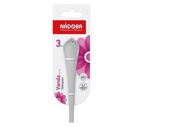 Набор ложек столовых NADOBA VANDA, 3 штукиПриборы серии VANDA изготовлены из высококачественной нержавеющей стали. Они устойчивы к механическим повреждениям и воздействию любых сред, не меняют вкус блюд и долгое время сохраняют превосходный вид, полученный благодаря высокой степени полировки. Особенности: количество персон: 3материал: нержавеющая стальможно мыть в посудомоечной машинедлина: 20.5 см