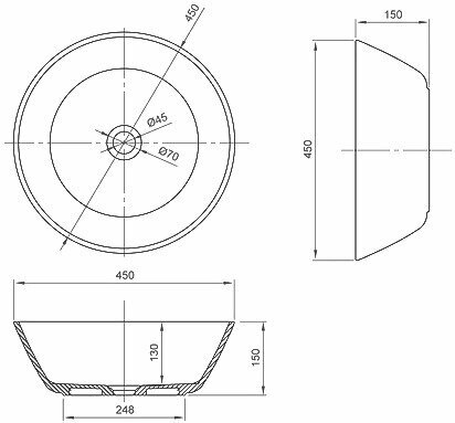 Накладная раковина-чаша Montebianco Piemont 450 12043 круглой формы отлично подойдет для ванных комнат с современным дизайном.