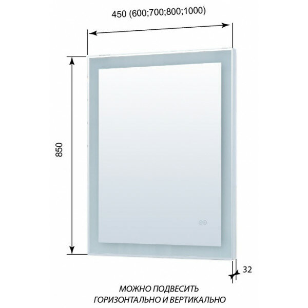 | Оснащение зеркала | С выключателем, с подсветкой |