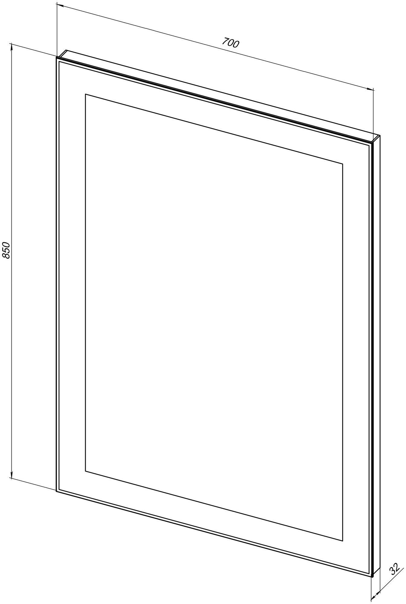 Зеркало прямоугольной формы порадует того, кто нацелен на создание стильного интерьера в ванной комнате. У него универсальная ориентация. Для его навески предусмотрите необходимое пространство на стене: в ширину изделие 700 мм, в высоту - 850 мм.