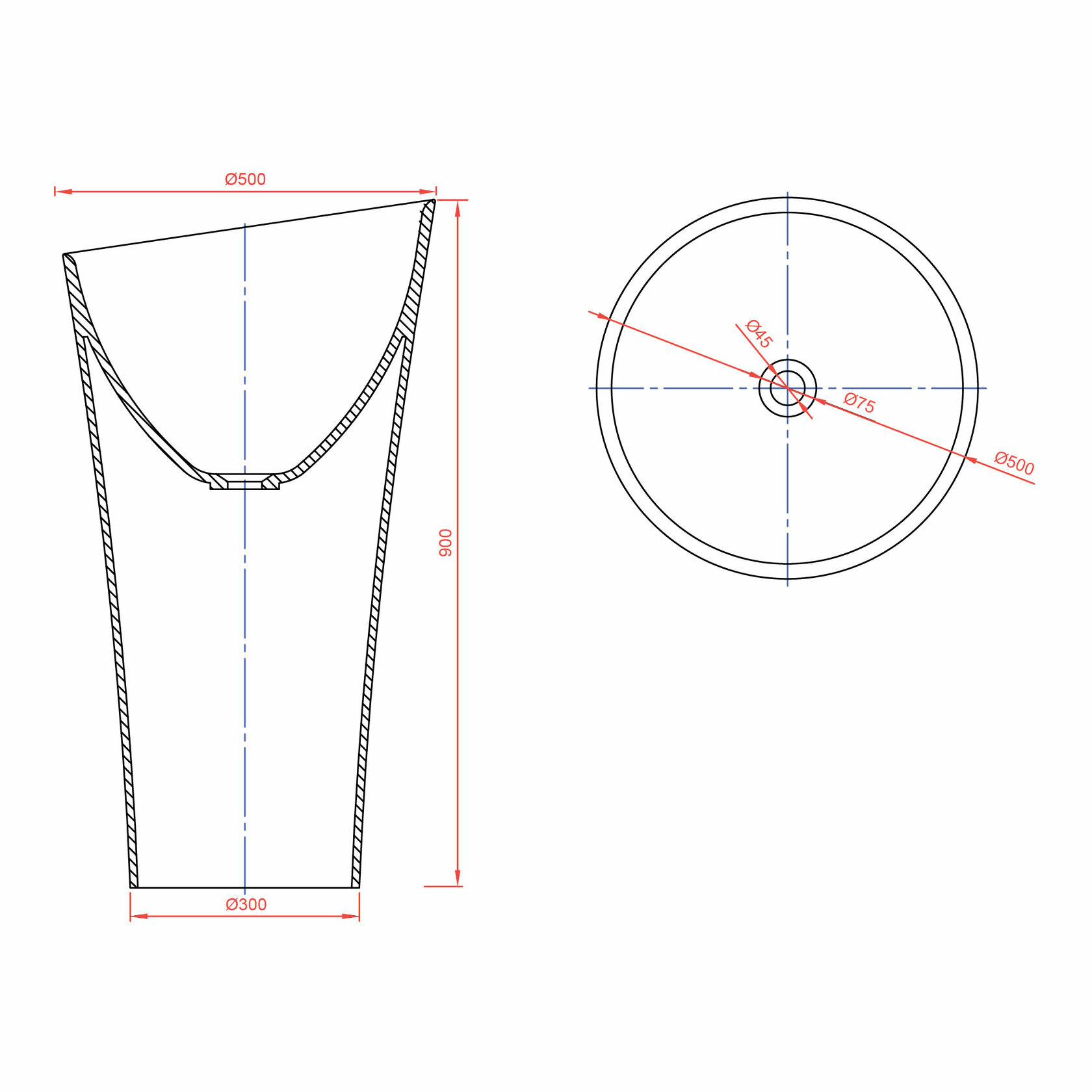 | Диаметр сливного отверстия | 45.000 |
