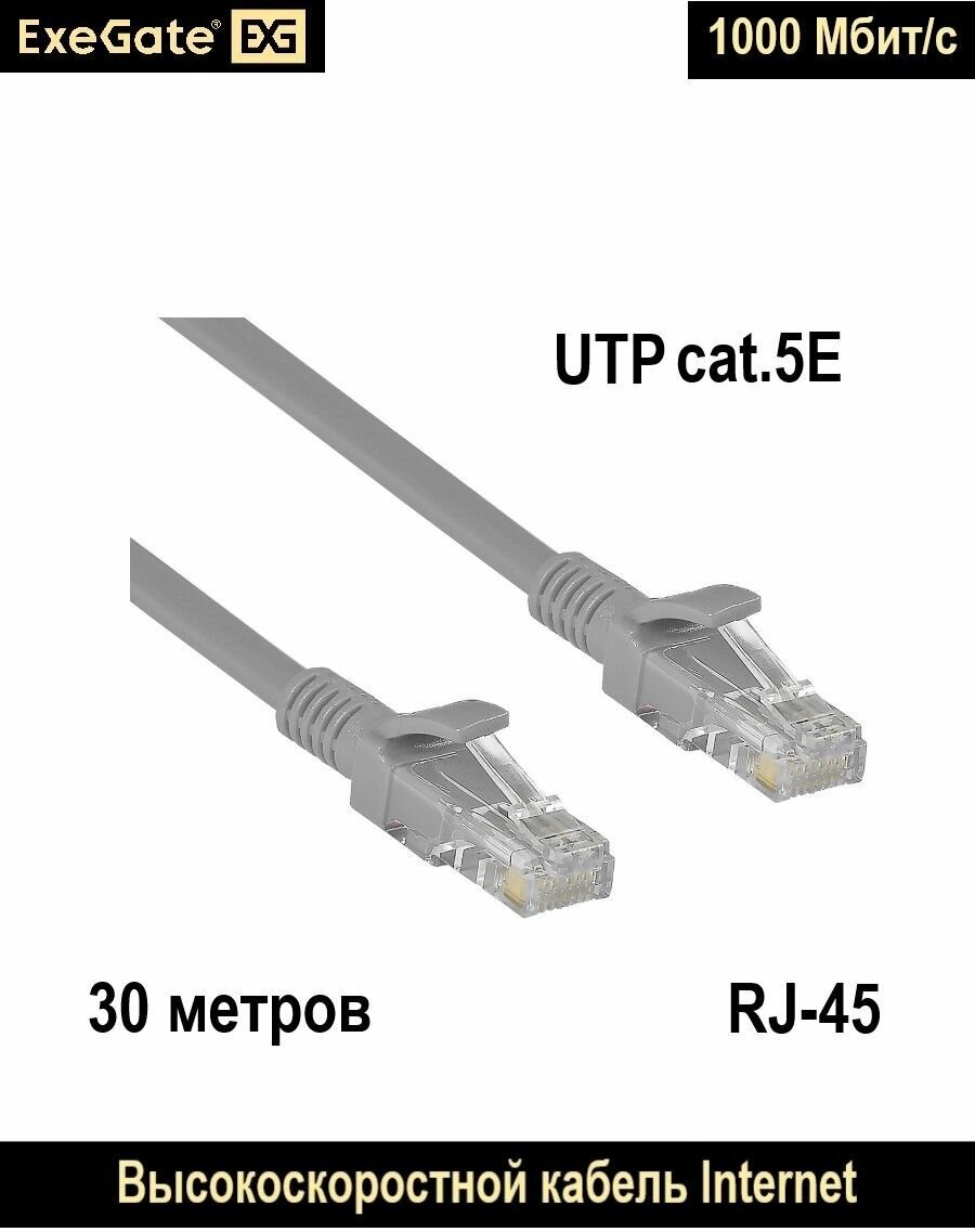 Кабель патч-корд UTP 5e кат. 30м. Exegate UTP-RJ45-RJ45-5e-30M-GY