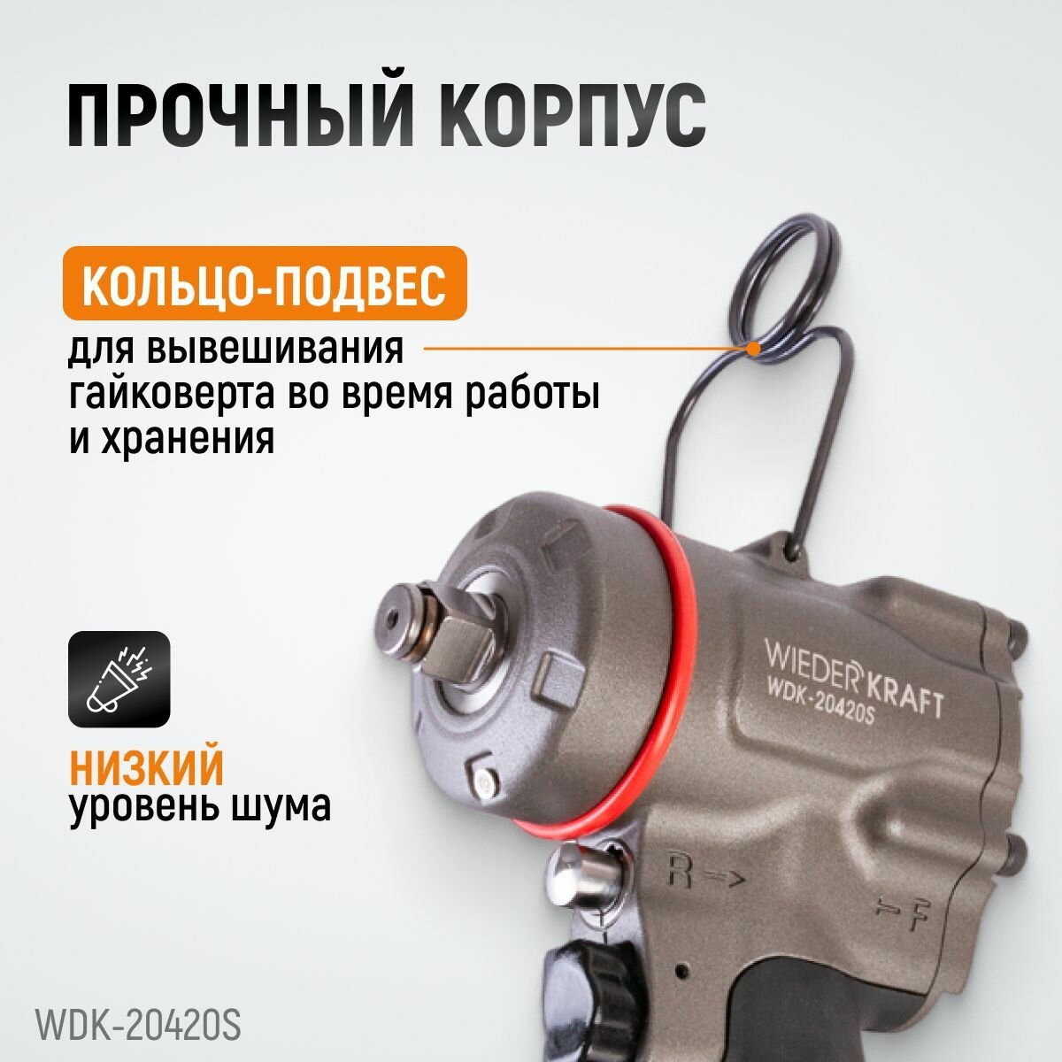 Компактный пневматический ударный гайковерт WIEDERKRAFT Wdk-20420s