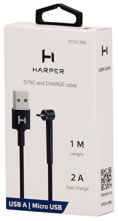 Кабели HARPER серии STCH особенны своей конструкцией коннектора, выполненного под углом 90 градусов, который позволяет использовать кабель как подставку для телефона. Кабели серии STCH выполнены в тканевой оплетке и поддерживают быструю зарядку с силой тока до 2 ампер.