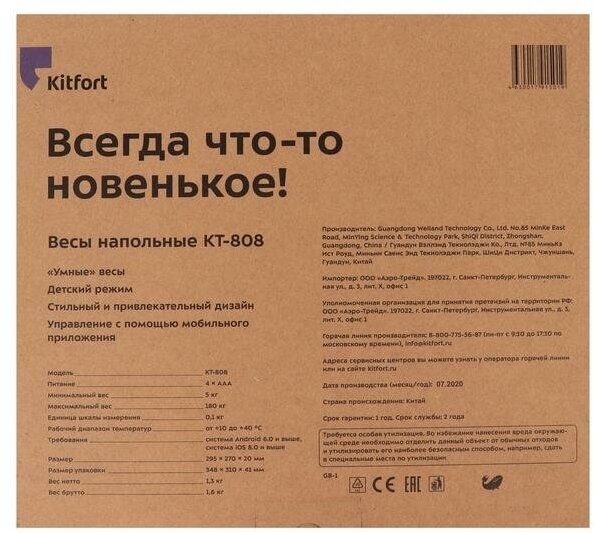 Модель КТ-808 представляет поколение умных весов. Они обеспечивают высокую точность измерения и станут неизменным спутником для людей, следящих за весом. В платформе встроены металлические пластины, встав на которые проводится диагностика тела. Далее весы легко синхронизируются с приложением «Fitdays» по Bluetooth, где будут отражены показатели вашего тела. Вся информация будет храниться у вас в телефоне.