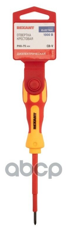 **Отвертка крестовая диэлектрическая Rexant PH0x75 мм** применяется для различных работ, требующих надежного и безопасного инструмента. Она изготовлена из высококачественных материалов, таких как двухкомпонентный пластик и хромованадиевая сталь, что обеспечивает ее долговечность и устойчивость к коррозии. Диэлектрическая защита позволяет использовать ее в условиях, где есть риск электрического удара. Магнитный наконечник удобен для работы с небольшими деталями.