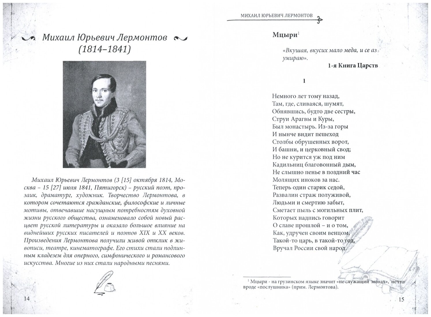 Из произведений Лермонтова выбрана поэма «Мцыри», отразившая его мятежную и чувствительную душу. Так что новый сборник — не только возможность познакомиться с творчеством современных писателей, но и обратиться к давно известному произведению, чтобы увидеть в нем то, что не виделось раньше.