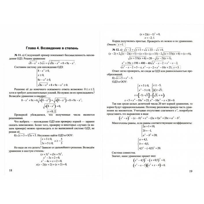 Пособие посвящено подробному разбору существующих способов решения иррациональных уравнений и неравенств. При этом классификация этих уравнений и неравенств осуществляется именно по методам их решения.