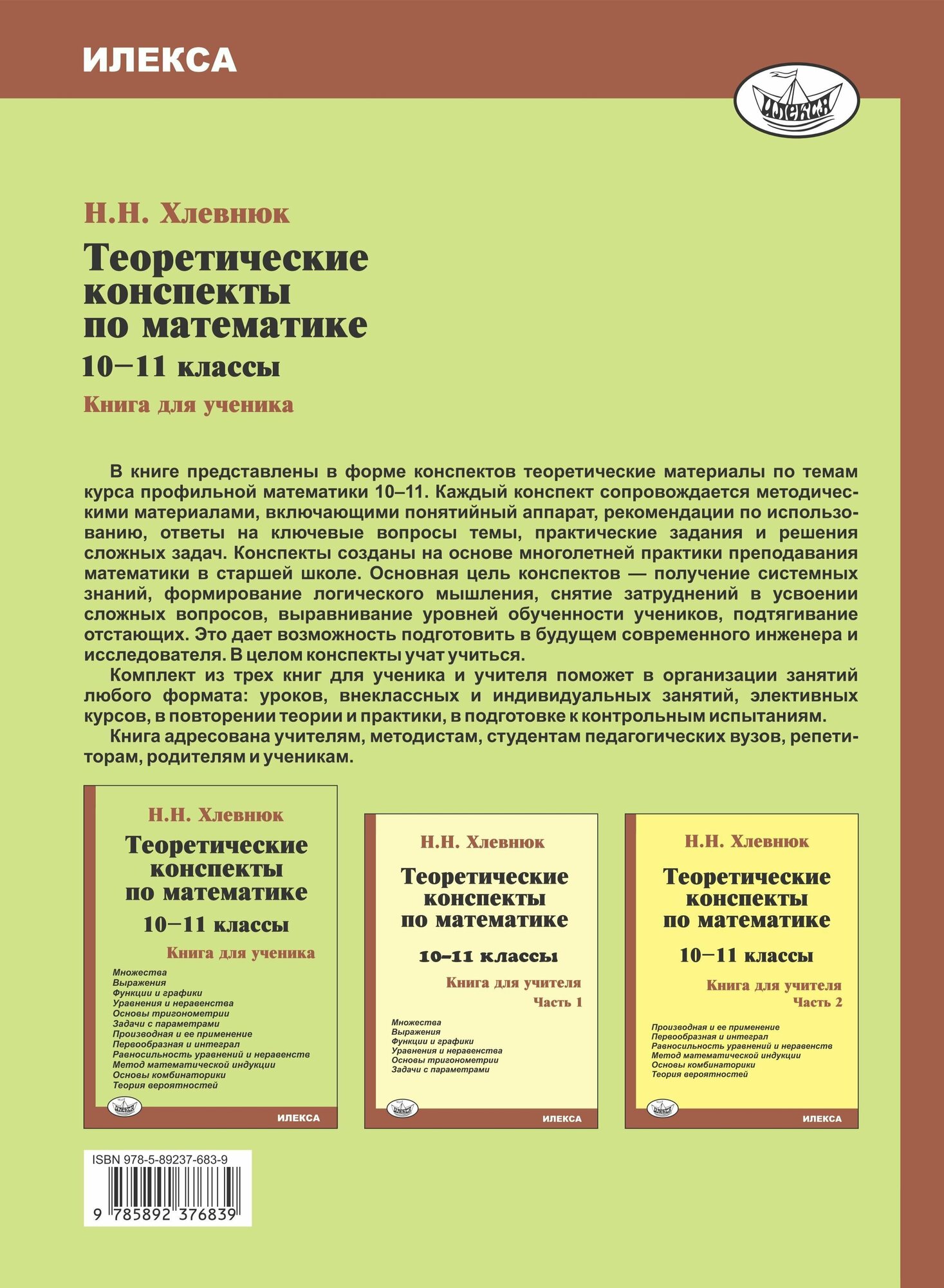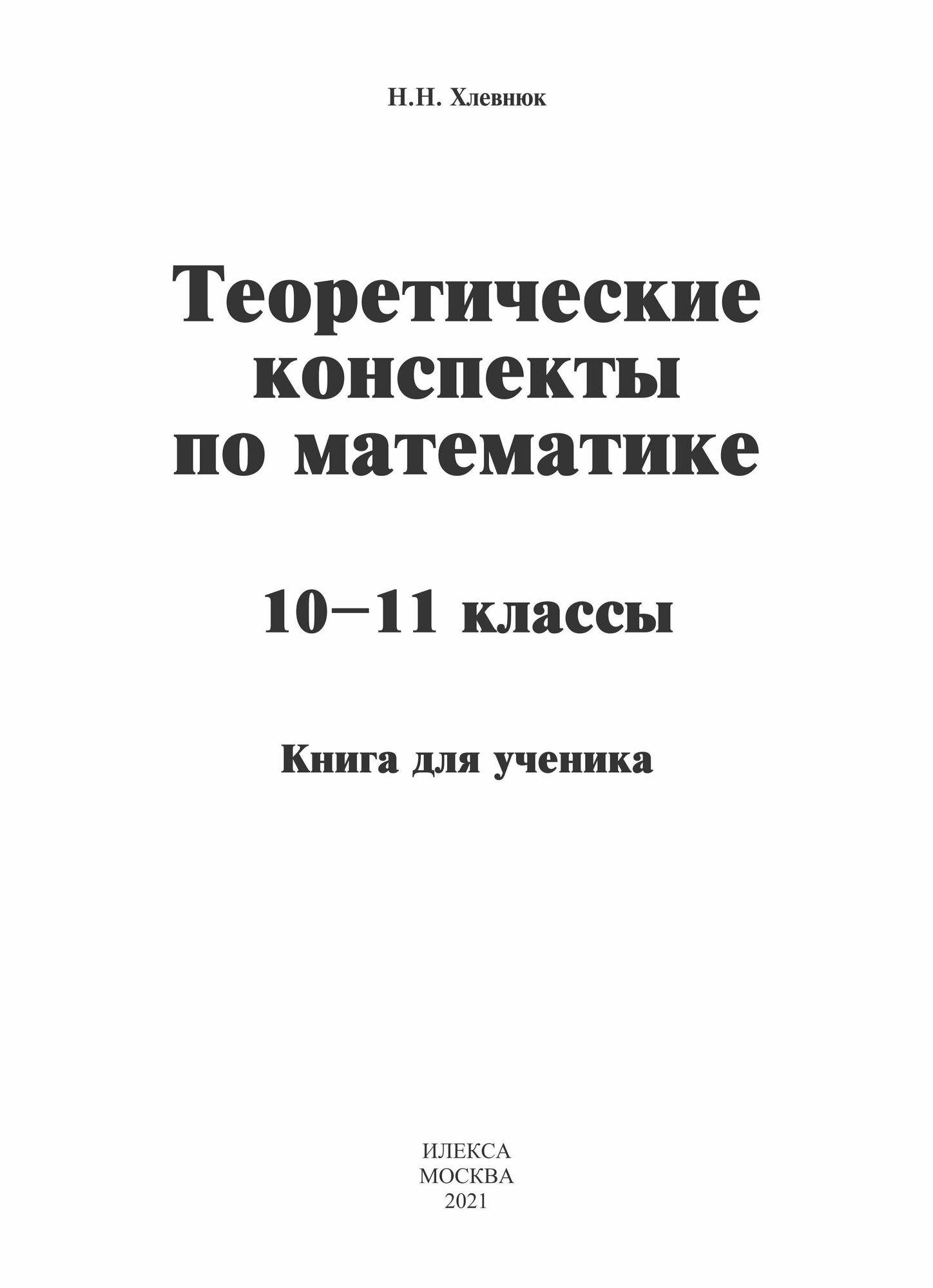 Математика. 10-11 классы. Теоретические конспекты. Книга для ученика (Хлевнюк Наталья Николаевна); Илекса, 2021