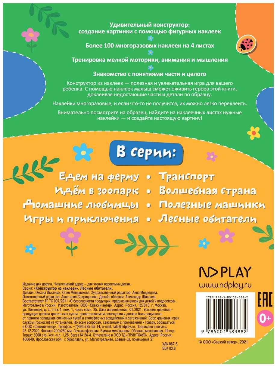 Конструктор из наклеек. Леесные обитатели (Спиридонова А. (ред.)); НД Плэй, 2021