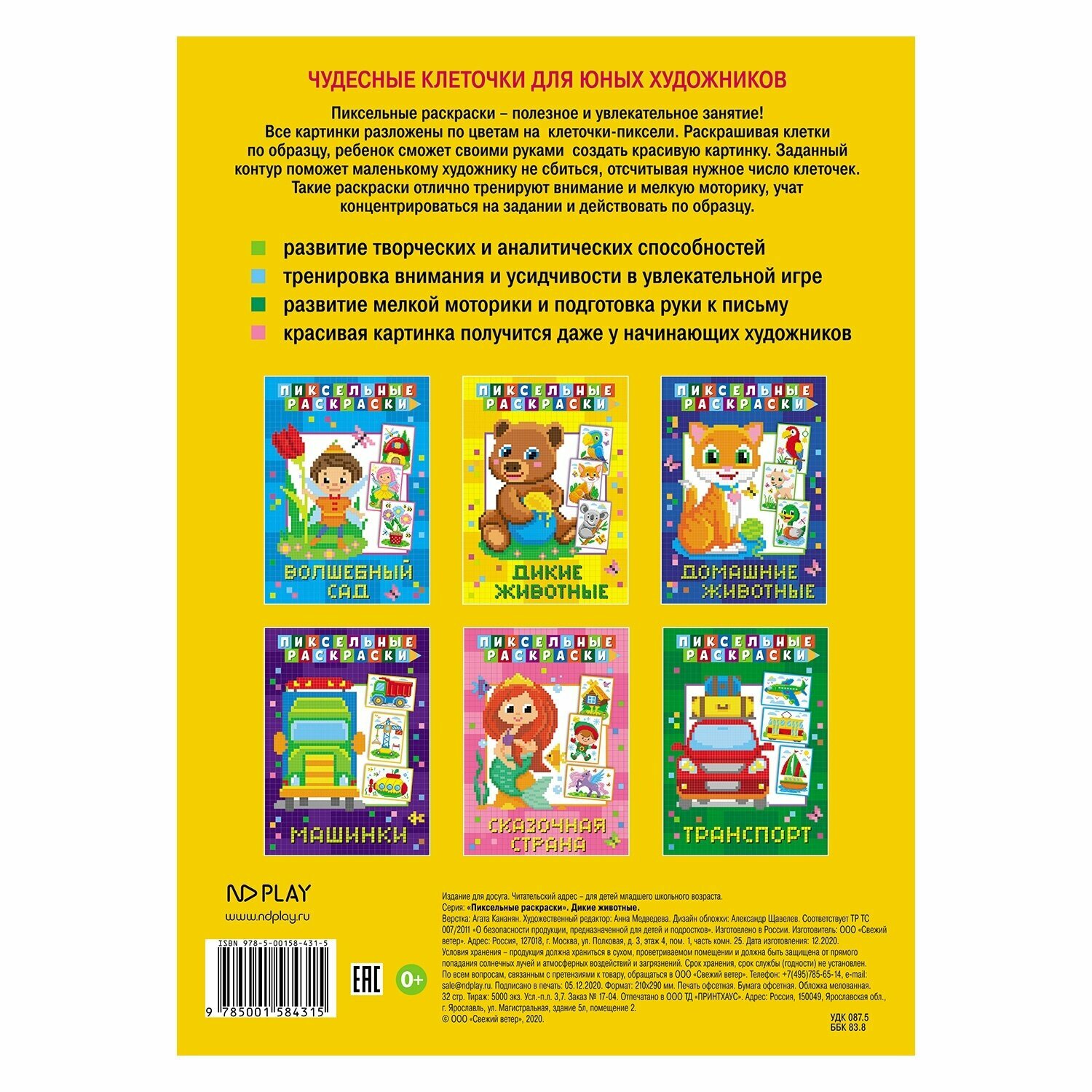 Пиксельная раскраска. Дикие животные (Медведева А. (ред.)); НД Плэй, 2021