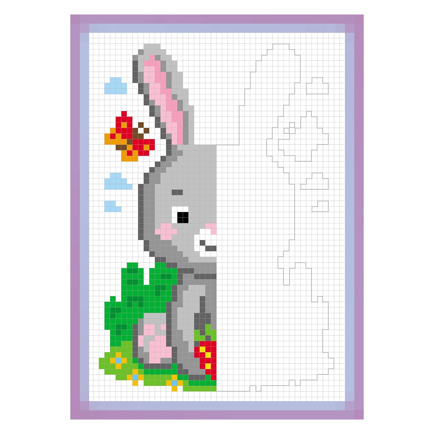 Все картинки разложены по цветам на клеточки-пиксели. Раскрашивая клетки по образцу, ребенок сможет своими рукам создать красивую картинку. Заданный контур поможет маленькому художнику не сбиться, отсчитывая нужное число клеточек.