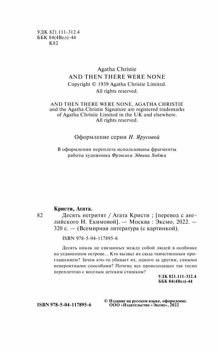 Книга: Десять негритят (Агата Кристи); Эксмо, Редакция 1, 2024