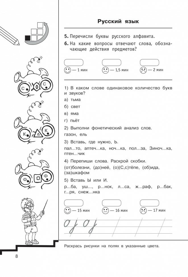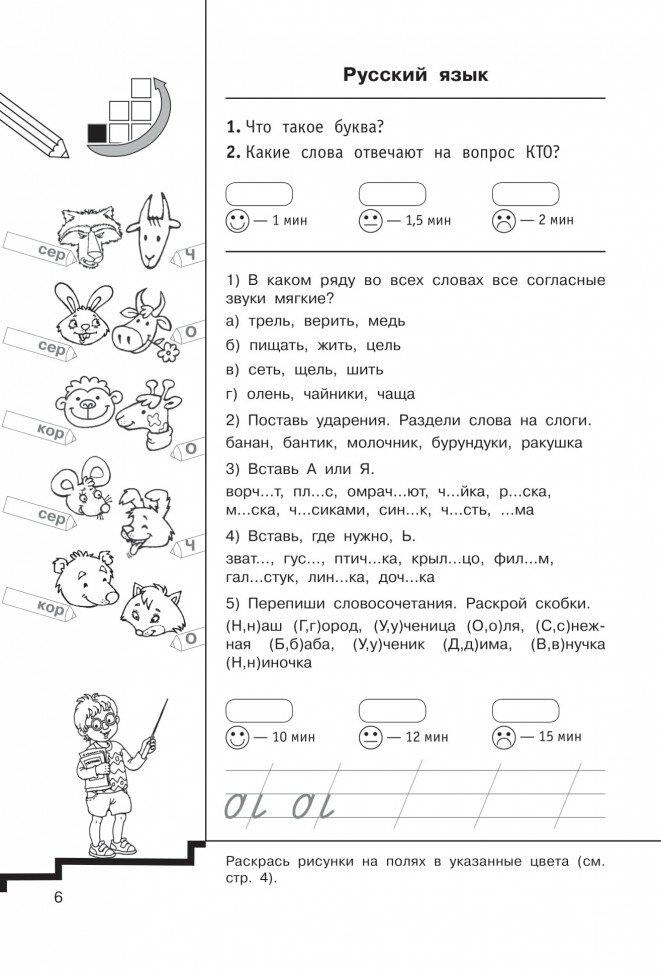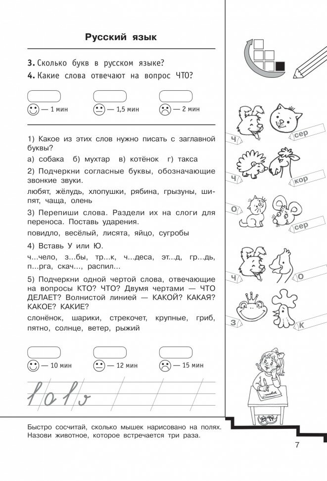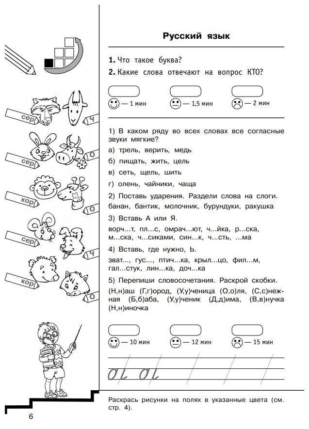 Рекомендуемое время на выполнение заданий позволит узнать, какие упражнения даются ученику легко, а какие вызывают затруднение.