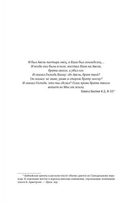 Авторитет Карен Армстронг во всем, что касается религии, незыблем во всем мире. Она наделена редкостными достоинствами: завидной ученостью и блистательным даром говорить просто о сложном. Глубокий обзор войн, которые часто считали «религиозными». Армстронг убедительно показывает: во многих случаях конфликт создавался не столько религией, сколько политическими проблемами. Своевременная и страстно написанная книга... Без сомнения, вызовет горячие споры на фоне нынешних зверств ИГИЛ (запрещенная в России террористическая организация) и многих других актов насилия, которые совершаются во имя религии.