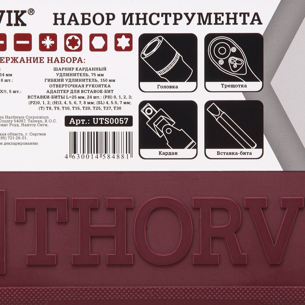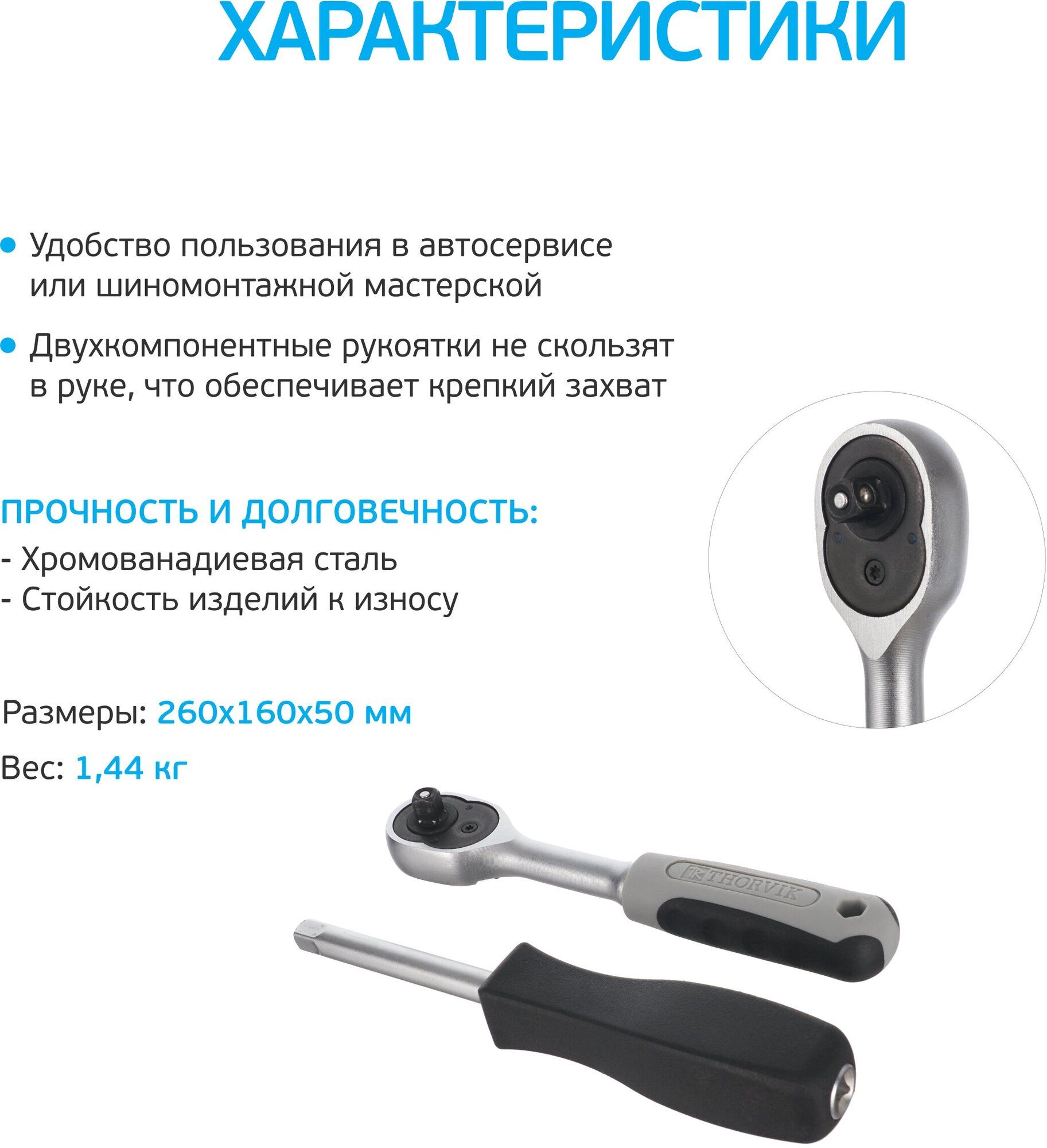100% Ростест, EAC, оригинальный и официальный товар от производителя и от официальных поставщиков. Thorvik - это набор инструментов , который априори является незаменимым компаньоном каждого ответственного мастера, стремящегося не только к качественному результату, но и заботящегося о собственном удобстве в ходе выполнения разного типа ремонтных работ. Набор представляет из себя самое рациональное сочетание видов инструмента, каждый из которых точно Вам пригодится.