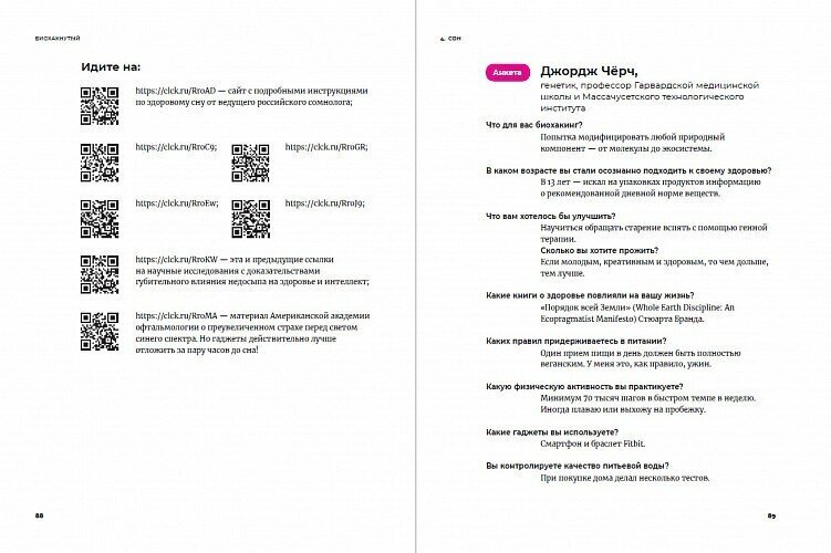 «Как врач и сторонник доказательной медицины я использую слово “биохакинг” в качестве синонима к длинному “система мер по гармонизации образа жизни с целью ее продления”. Управлять собственными здоровьем, уровнем энергии и интеллектом не так сложно, как кажется, и по большому счету требует только любви к себе и желания жить максимально продуктивно. В помощь нам даны все достижения цивилизации: медицинские технологии, знания о психике, мозге, физиологии, результаты серьезных исследований, лекарства с доказанной эффективностью, всевозможные гаджеты и разнообразные спортивные дисциплины. Этих безопасных инструментов более чем достаточно, чтобы любого человека превратить в лучшую версию себя».