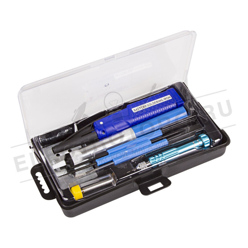 - паяльник 8 Вт, имеющий длинное тонкое жало, которым возможно произвести пайку даже в труднодоступных местах. Жало быстро разогревается до нужной температуры. Питание паяльника осуществляется от 3-х батареек АА;