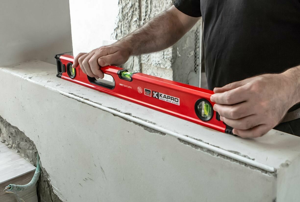 Применяется для строительных работ, укладки плитки, навешивания шкафов, простых ремонтных работ, установки бытовой техники. Уровни KAPRO выдерживают эксплуатацию в самых тяжелых условиях труда.
