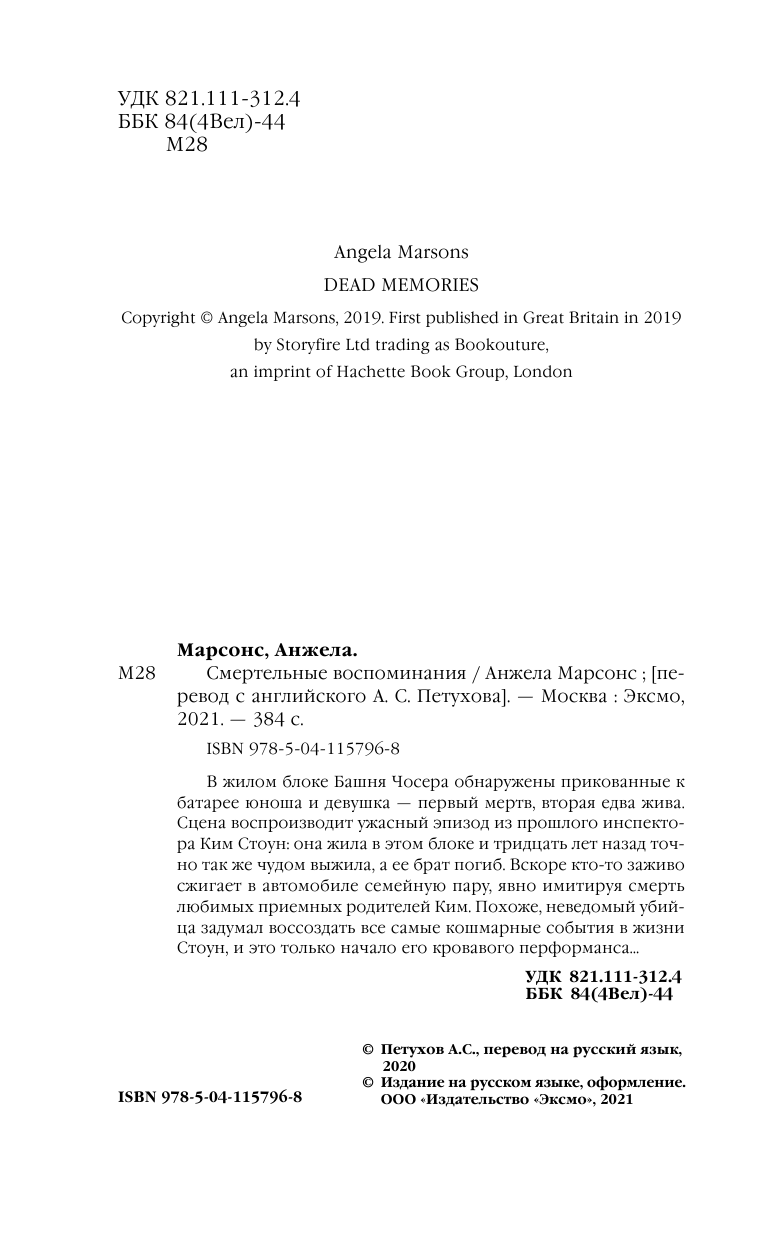 Книга: Смертельные воспоминания (Анжела Марсонс); Эксмо, Редакция 1, 2021