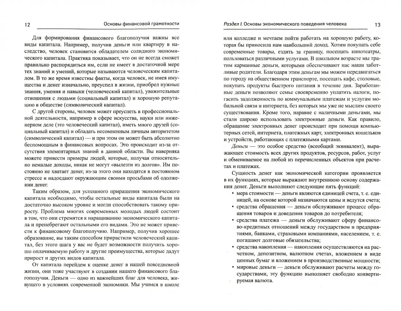 Книга содержит три раздела: раздел I "Основы экономического поведения человека", раздел II "Управление финансовыми ресурсами", раздел III "Основы предпринимательства". Содержание разделов позволяет многосторонне изучить предмет и получить профессиональные навыки в области финансовой грамотности. Материал изложен в доступной форме, содержит множество примеров, таблицы и рисунки. После каждой темы приведены вопросы для самоконтроля.