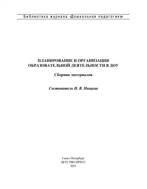 Планирование и организация образовательной деятельности в ДОУ. Сборник материалов. (Нищева Наталия Валентиновна); Детство-Пресс, 2021