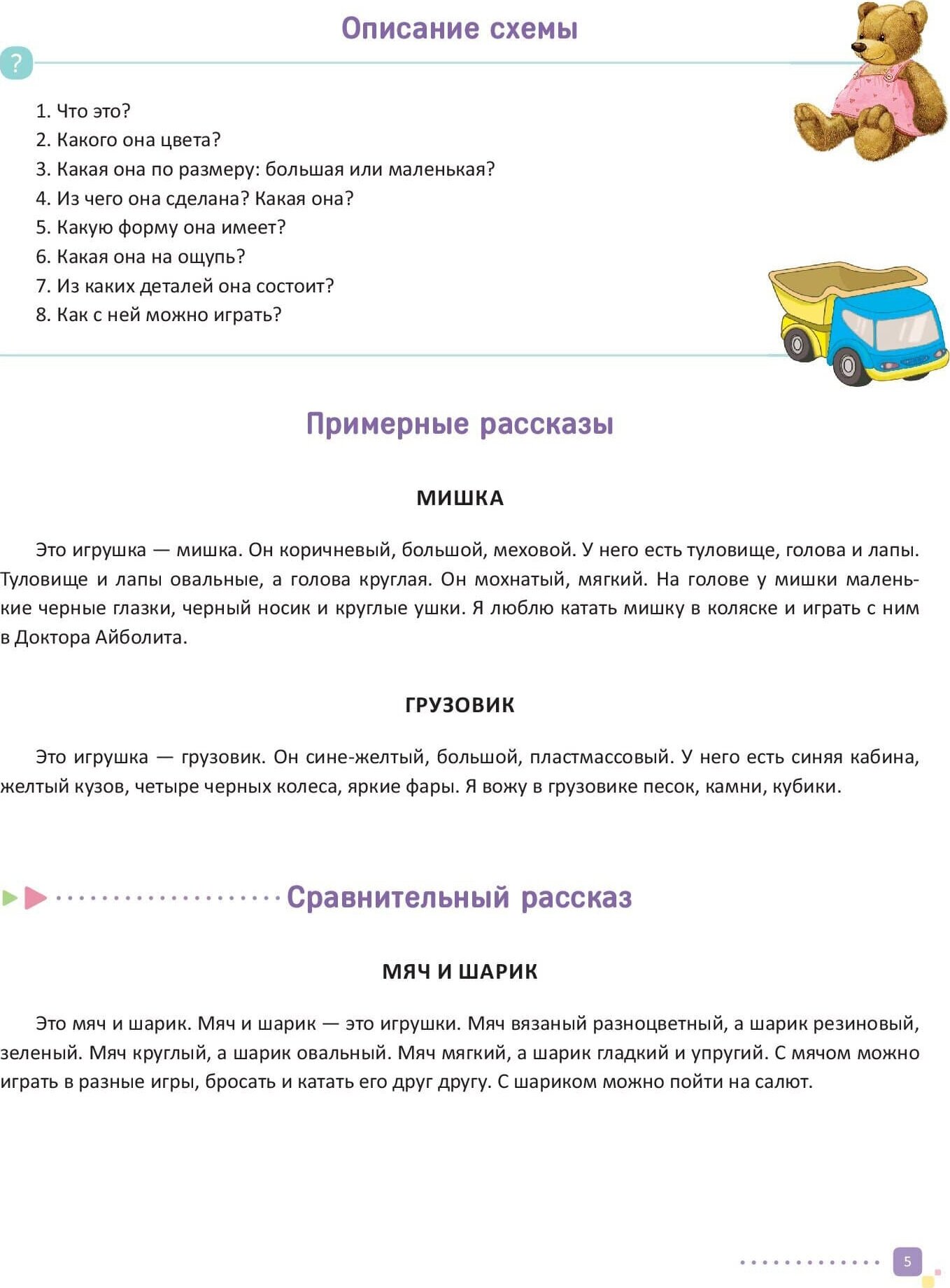 Развитие монологической речи у детей дошкольного возраста начинается в средней группе детского сада с обучения составлению описательных рассказов об окружающих предметах и объектах. В старшей группе детей учат составлять не только описательные, но и сравнительные рассказы. В подготовительной группе все умения у предшкольников закрепляются, и особое внимание уделяется творческой составляющей. В тетради представлены алгоритмические схемы для составления описательных и сравнительных рассказов по всем лексическим темам, изучаемым в детском саду, образцы рассказов, расшифровка и описание каждой схемы для педагогов.