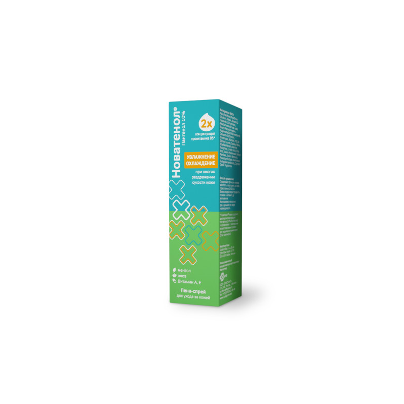 НОВАТЕНОЛ ПЕНА-СПРЕЙ ДЛЯ УХОДА ЗА КОЖЕЙ - представляет собой нежную и легкую пену с успокаивающими, восстанавливающими и увлажняющими свойствами для ухода за поврежденной кожей. Пена может быть использована для обработки кожи после воздействия солнечных лучей, термического воздействия (высокие и низкие температуры), воздействия ветра и мороза, при ссадинах и царапинах, сухости и трещинах кожи. Продукт является косметическим средством, удобен в применении, быстро впитывается и не оставляет следов на одежде. Новатенол® содержит двойную концентрацию Провитамина В5*, который оказывает увлажняющее, смягчающее действие, способствует устранению покраснений, сухости и дискомфорта, восстановлению упругости и эластичности кожи, защите кожи от воздействия неблагоприятных факторов окружающей среды, в том числе после длительного пребывания на солнце. За счет охлаждающего эффекта пена способствует устранению неприятного ощущения стянутой и напряженной кожи. ДЕЙСТВУЮЩИЕ ВЕЩЕСТВА ПРОДУКТА: Пантенол (провитамин В5) и алоэ - способствуют увлажнению и делают кожу более эластичной. Глицерин - оказывает успокаивающее действие на раздраженную кожу и дополнительно создает защитную пленку, которая защищает от вредного воздействия внешних факторов. Аллантоин - увлажняет, успокаивает и дает ощущение гладкости кожи. Ментол - охлаждает, помогает уменьшить ощущение жара или зуда на горячей коже. Витамин Е - благотворно влияет на сухую и раздраженную кожу, способствует снятию ощущения сухости и помогает поддерживать оптимальный уровень увлажнения кожи. Линолевая кислота, содержащаяся в семенах льна, снижает риск чрезмерного высыхания кожи и защищает липидный слой от воздействия вредных внешних факторов, а также способствует повышению эластичности и упругости кожи; особенно рекомендуется для сухой, покрасневшей и раздраженной кожи. Витамин А - оказывает антиоксидантное и общеукрепляющее действие на кожу. Специальные особенности: He содержит парабенов и красителей. *Новатенол® пена-спрей содержит двойную концентрацию пантенола (10% пантенола) по сравнению с некоторыми косметическими спреями для наружного применения (5% пантенола).