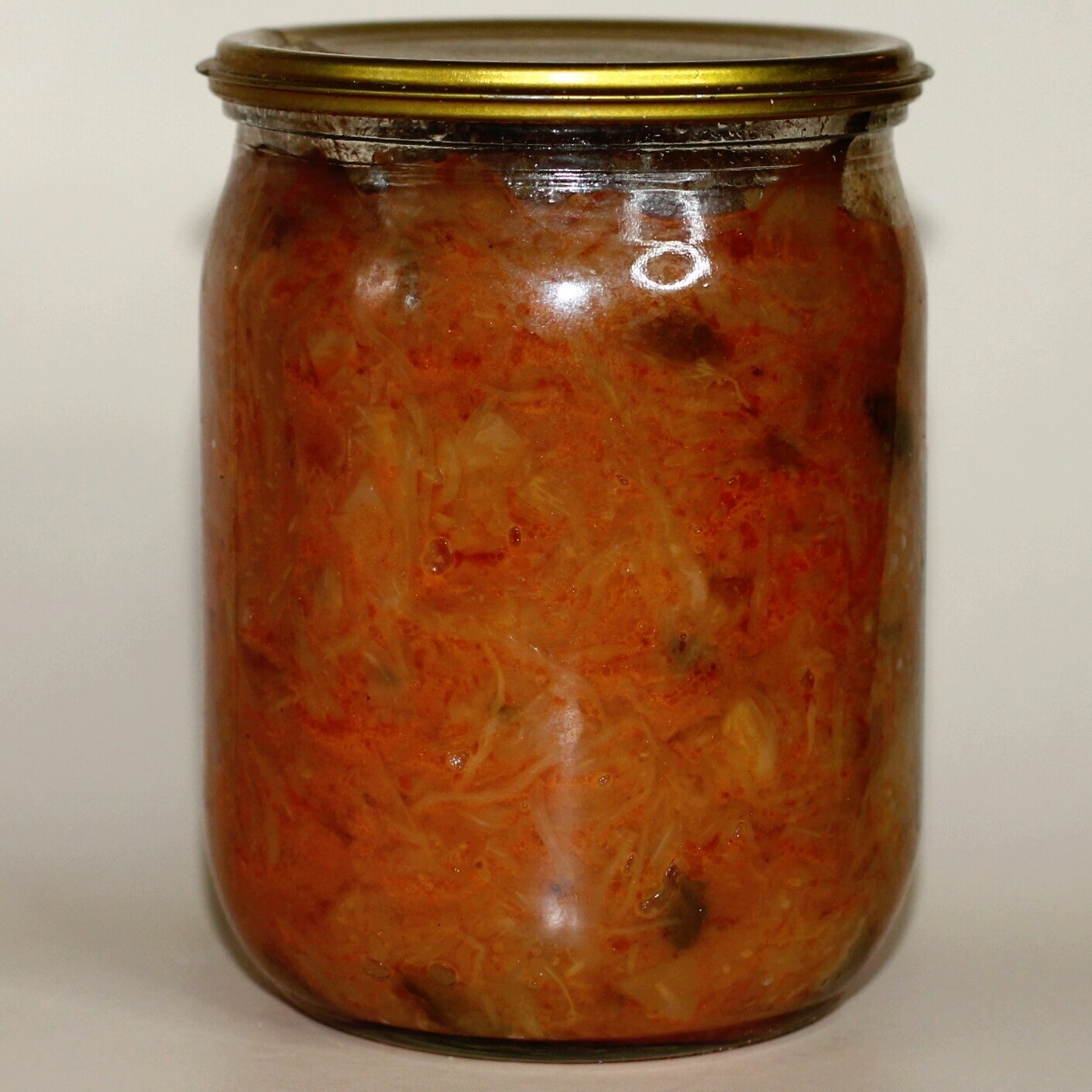 | Состав | капуста свежая, огурцы соленые, лук репчатый, масло подсолнечное рафинированное, томат-паста, сахар-песок, соль, перец душистый, перец горький, лавровый лист |
