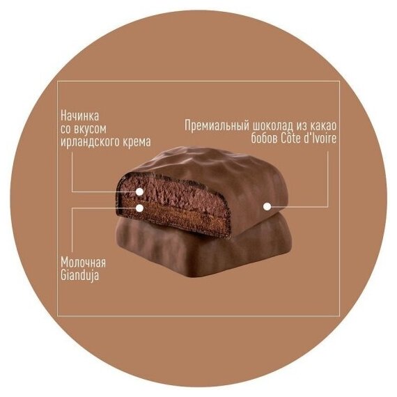 BIENNALE QUADRA Irish Cream - нежная джандуйя, начинка с нотами «ирландского крема», молочный шоколад из какао-бобов Cote d'Ivoire.