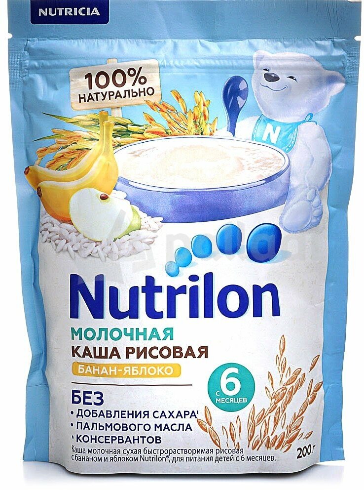 | Состав | рисовая мука (из молотого зерна риса), цельное сухое молоко, банановые хлопья, натуральный яблочный порошок |
