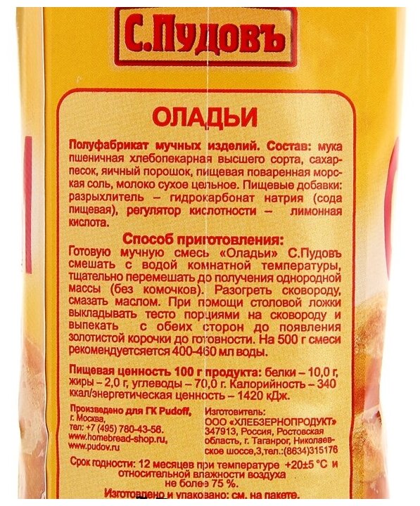 Сервис сравнения цен СкидкаГИД предлагает сравнить цены на товар «Смесь для выпечки С.Пудовъ Оладьи 500г»