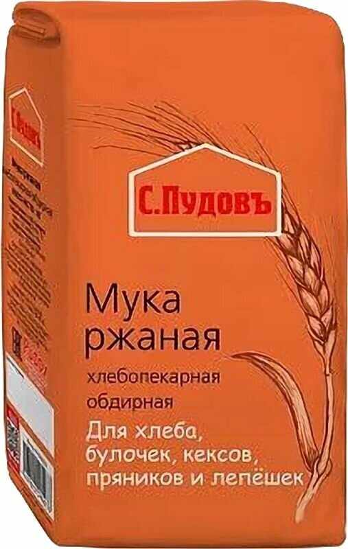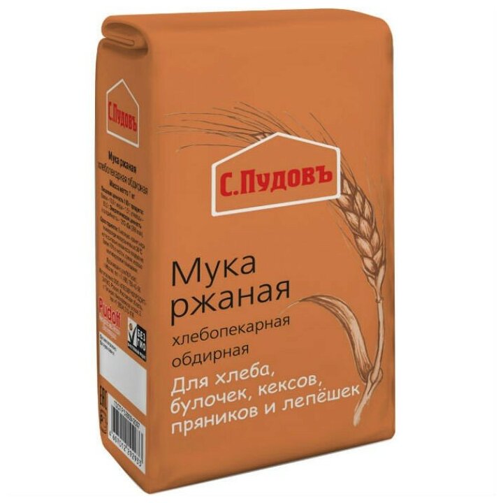 Вся польза натурального зерна собрана и сохранена в ржаной хлебопекарной обдирной муке «С. Пудовъ».В процессе производства этого сорта муки зерно очищают от внешней оболочки (обдирают).Этот вид муки часто путают с обойной, но различия в них есть.После перемалывания зёрен, обдирную муку просеивают и удаляют крупные части зерна, поэтому на вид обдирная мука мельче и светлее.Однородная структура ржаной обдирной муки «С. Пудовъ» позволяет использовать её не только для выпекания хлеба, но и для вкусных и полезных десертов.И в том, и в другом случае готовые изделия имеют глубокий насыщенный аромат и узнаваемый вкус с легкой горчинкой.Ржаная обдирная мука «С. Пудовъ» сохраняет в себе все важные для здоровья организма микроэлементы и витамины. Популярный продукт среди тех, кто придерживается правильного питания.Состав: мука ржаная обдирная. Без ГМО.Пищевая ценность в 100 г продукта: белки - 9,0 г, жиры - 1,5 г, углеводы - 62,0 г.Энергетическая ценность/калорийность: 1250 кДж/300 ккал.Срок хранения: 12 месяцев. Хранить при температуре +20±5С и относительной влажности воздуха не более 70%, в сухих, чистых, хорошо вентилируемых помещениях, не зараженных вредителями хлебных запасов.