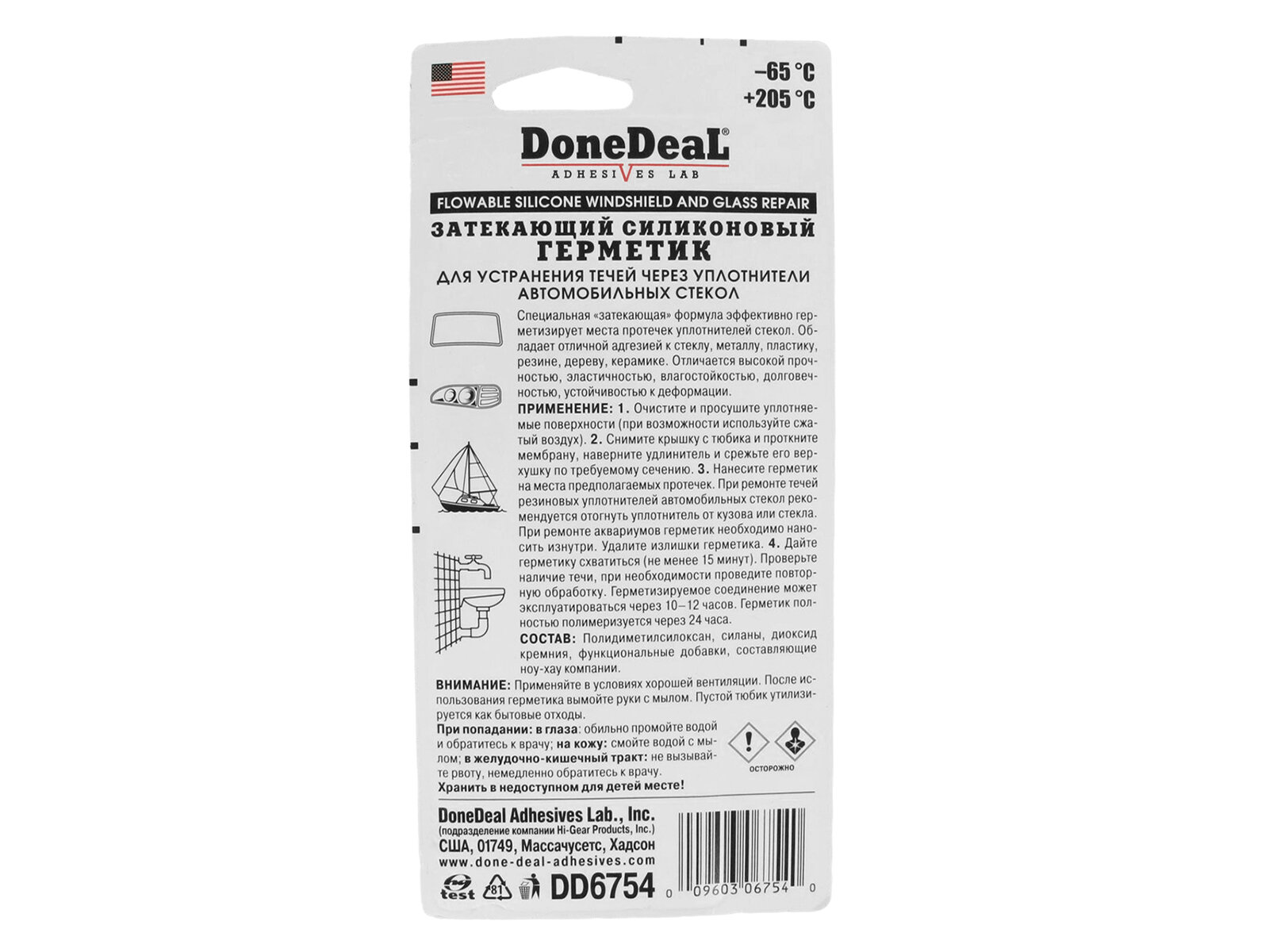 Затекающий силиконовый герметик для ремонта стекол Done deal »