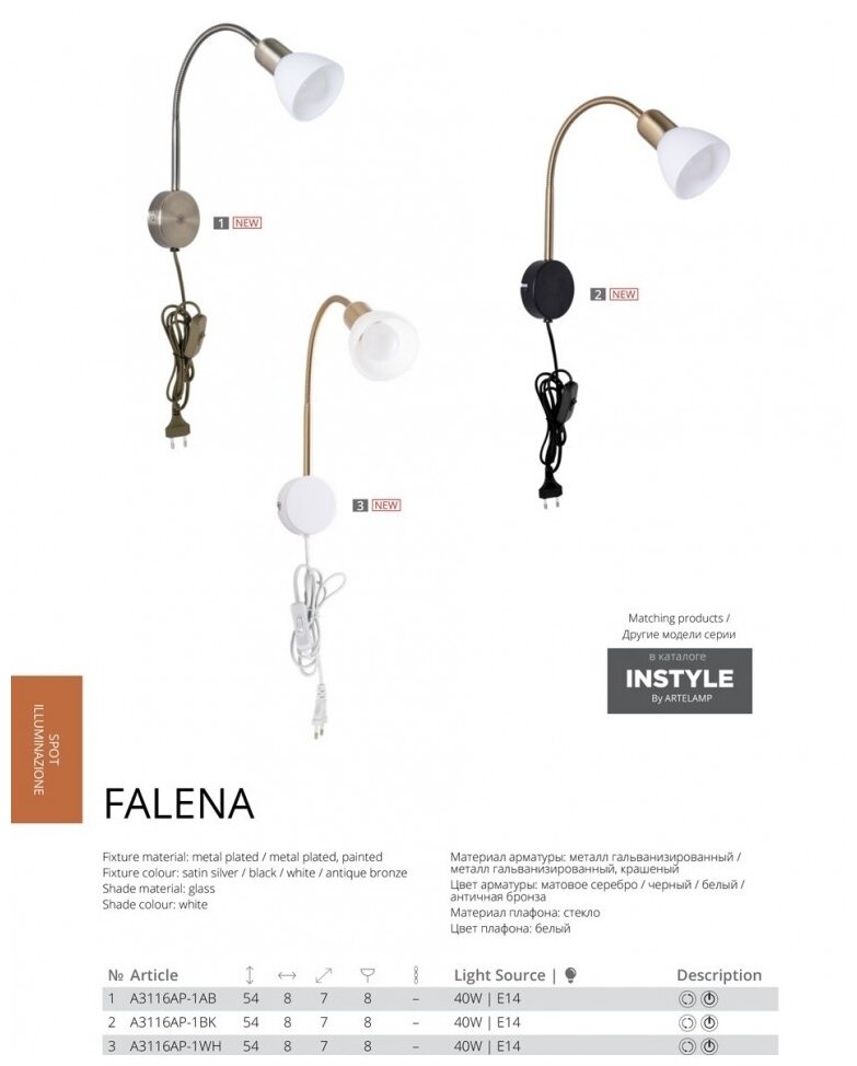 Спот с выключателем - продукт известной компании Artelamp (Италия). Имеет максимальную мощность 40 Вт, освещает площадь до 2 кв. м. Отлично подойдет для таких мест, как спальня, кабинет. Впишется в интерьеры следующих стилей: модерн.