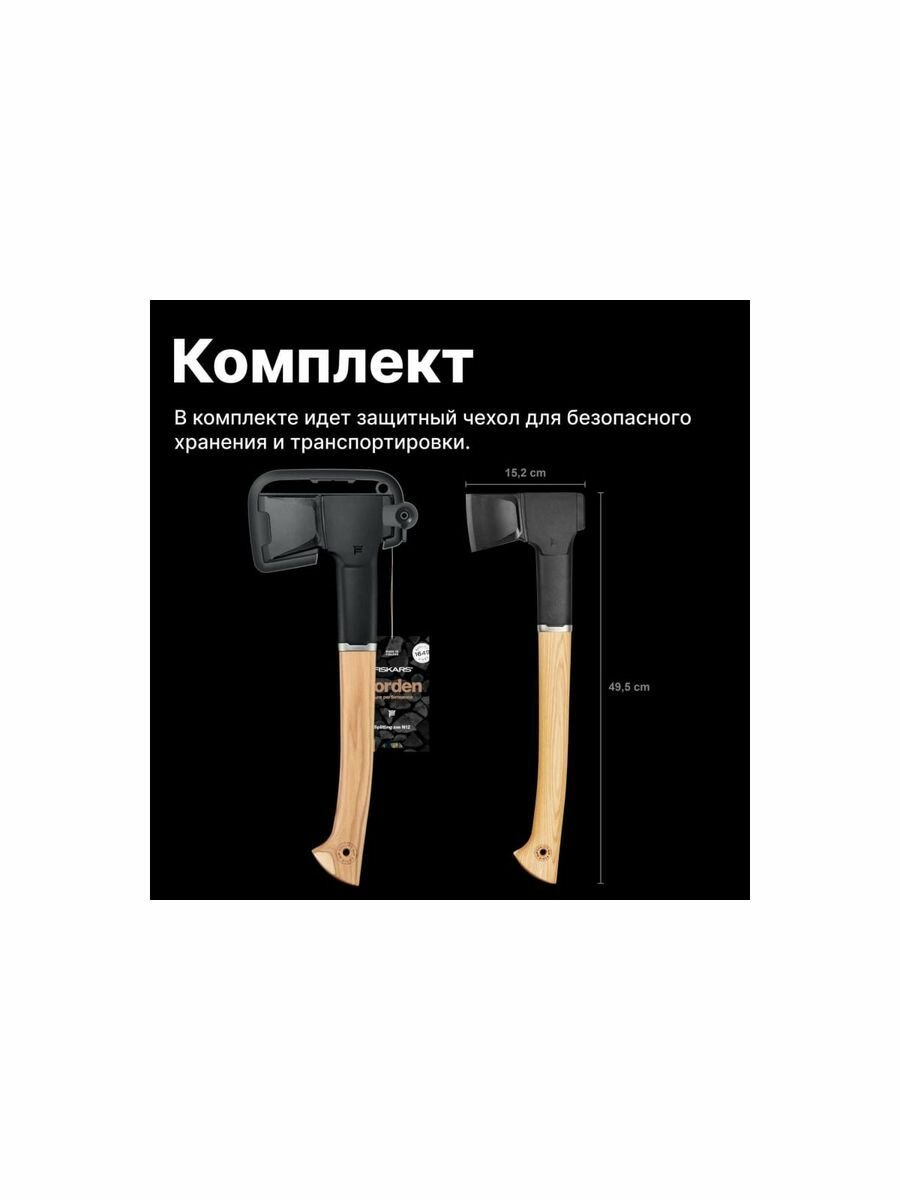 Топор-колун Fiskars предназначен для колки небольших поленьев диаметром до 20 см. Инструмент выполнен из надежных материалов. Рукоять из дерева удобно лежит в руке и не скользит во время работы. В комплекте с топором поставляется защитный чехол для безопасного хранения и транспортировки инструмента.Преимущества Острое заточенное лезвие изготовлено из углеродистой стали. Двойная степень закалки у основания и у кромки лезвия препятствует разрушению, легко затачивается Антифрикционное покрытие защищает лезвие от коррозии и уменьшает трение, таким образом лезвие не застревает в древесине Лезвие зафиксировано в топорище и не сорвется при работе Центр тяжести смещен ближе к лезвию для контроля топора при ударе Защита от промаха из армированного стекловолокном полиамида FiberCompTM Прочный, при этом легкий материал поглощает вибрацию Высококачественное топорище из дерева Гикори Покрытие лаком для максимальной защиты рукоятки Крючкообразная рукоятка обеспечивает надежный захват и предотвращает выскальзывание топора из руки
