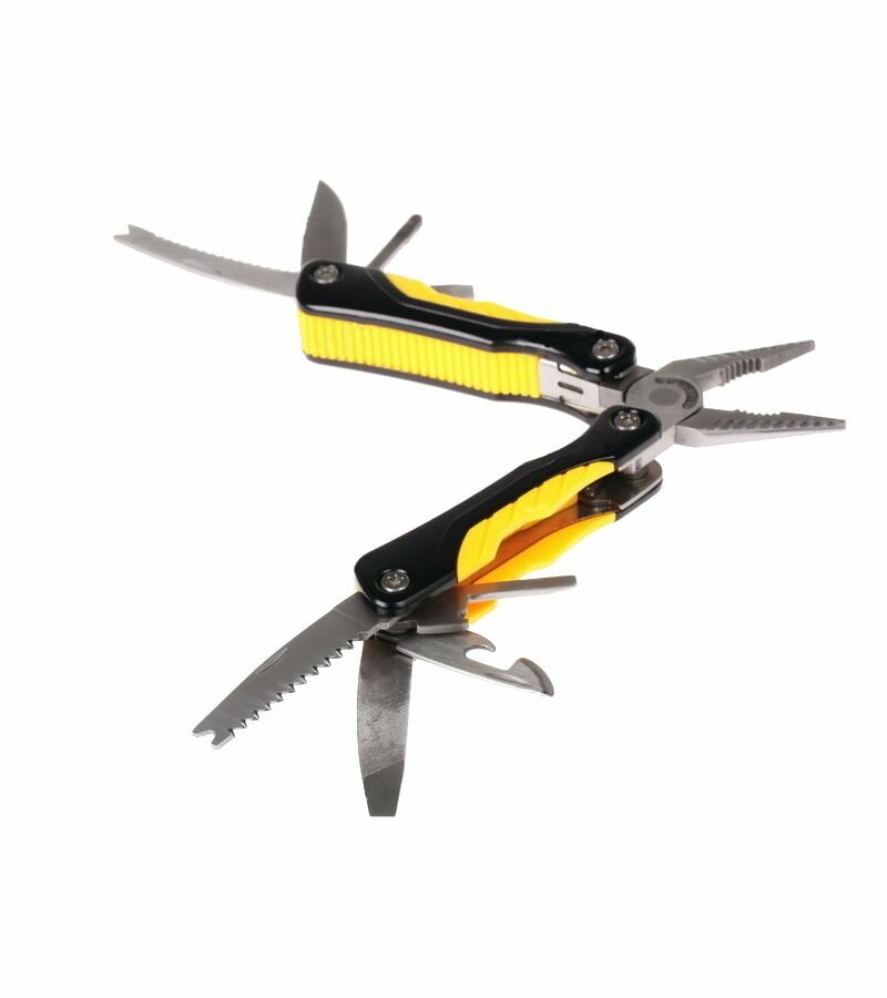| Функции | плоскогубцы, кусачки, захват для цилиндров и гаек, нож, напильник, рыбочистка, отвертка PH, отвертка SL (малая), отвертка SL (средняя), открывалка для консервных банок, открывалка для бутылок, пила по дереву |