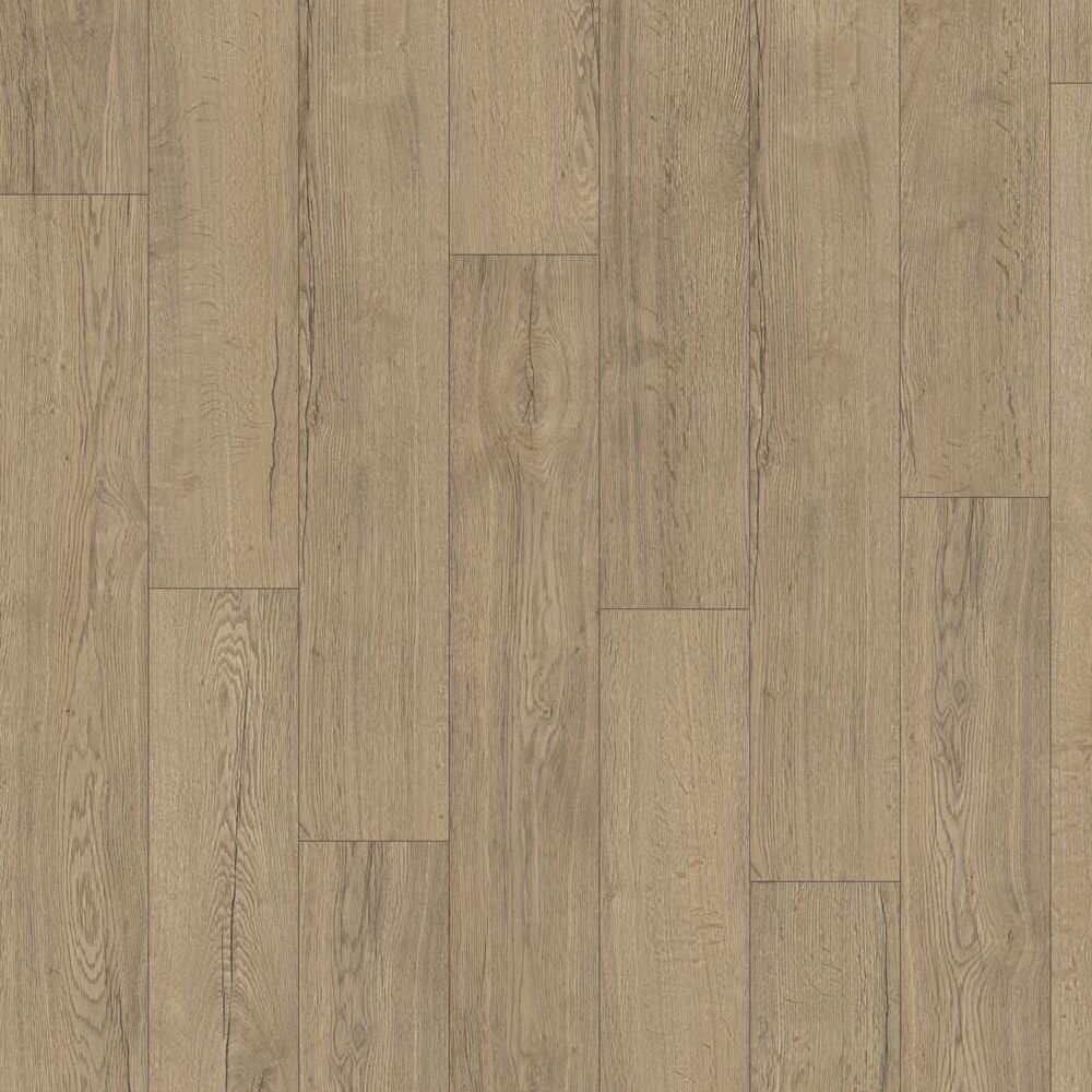 Универсальное напольное покрытие в формате классической половицы с фаской по периметру визуально неотличимо от паркетной доски. Достоверная репродукция дуба с тонкими трещинами, мелкими порами и рустикальной небрежностью в декоре привносит нотку индивидуальности в дизайн интерьера, создает атмосферу природной гармонии.